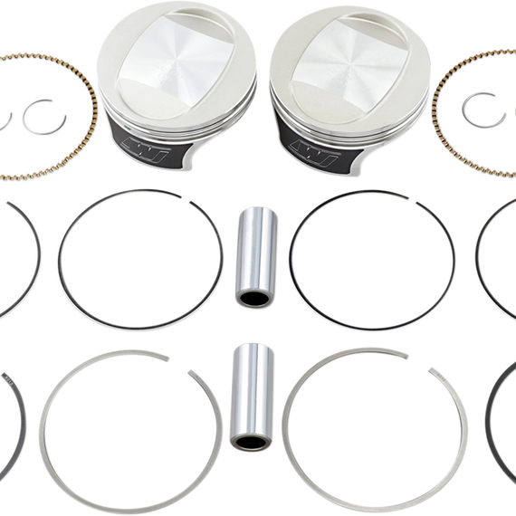 Caracteristicas: Forged piston crown with generous valve pockets for big valves and cams Precision-fit rings selected for each application for ultimate sealing Force-fed pin oiling provides enhanced lubrication of the piston pin Pressure seal groove reduces ring lifting and power loss ArmorGlide® skirt coating reduces friction, providing quieter operation and improving scuff resistance Valued-packaged with two pistons, rings, piston pins and circlips Made in the U.S.A