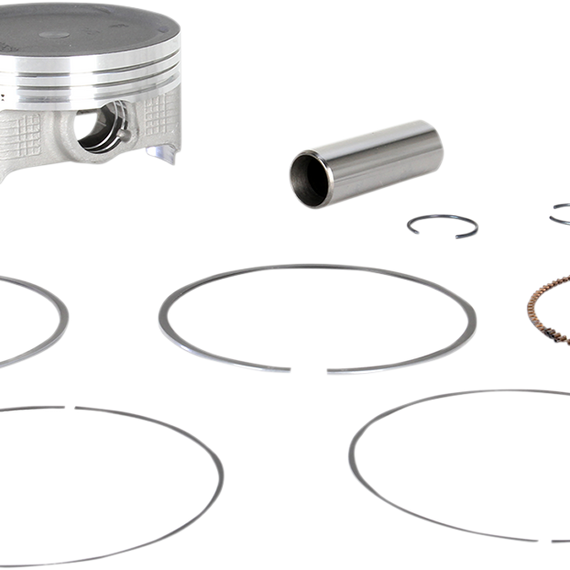 Caracteristicas: Quality and construction that meets or exceeds OEM Feature improved E-clip design Contain piston, rings, pin and clips Additional rings available separately Order one per cylinder Skirts have a nonabrasive, expansion-retarding MOS2 coating to reduce heat and friction for added power and longevity MOS2 coating actually draws heat through piston walls and out the bottom Specially hardened tops add strength to ring grooves
