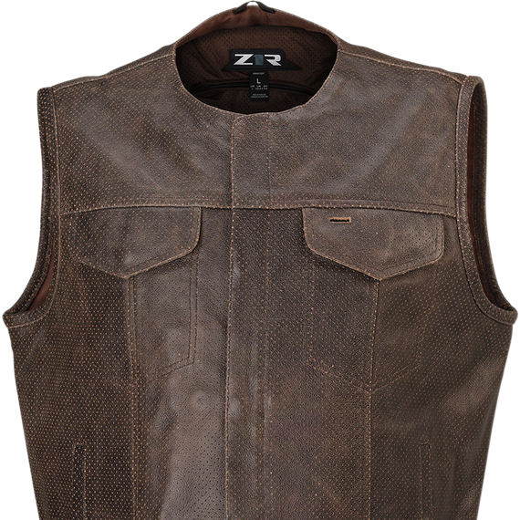 Caracteristicas: Perforated premium 1.1-1.2mm full grain cowhide leather Metal snaps & concealed zipper front closure Two exterior chest pockets and two handwarmer pockets Two concealed carry pockets One-piece seamless leather back panel with zipper access for easy embroidery or patch application Polyester mesh liner wicks moisture