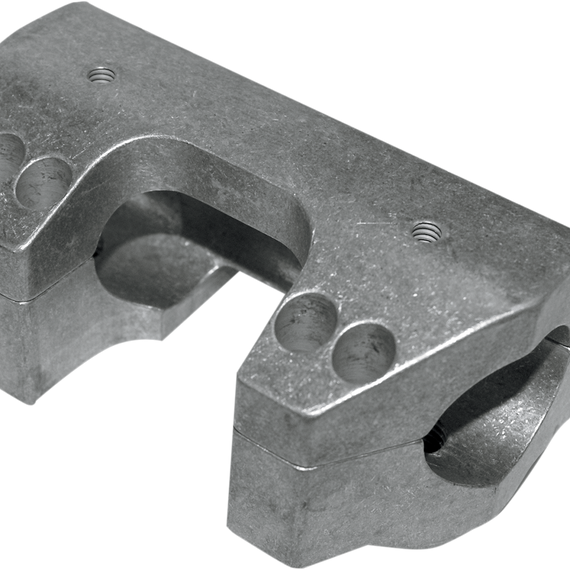 Caracteristicas: Fit under the stock cover Include all necessary installation hardware CNC-machined from 6061-T6 aluminum with a raw finish Tapped for 1/2"-13 riser bolts Top clamp has tapped holes to lock handlebars in place Come with set screws Made in the U.S.A.