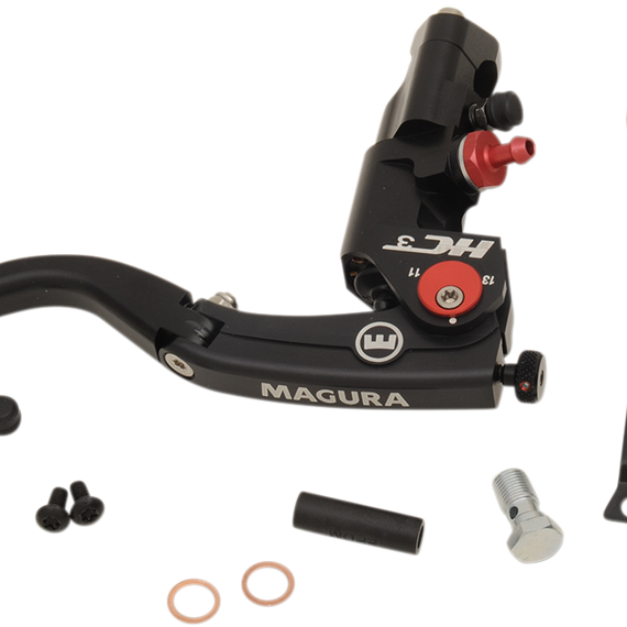 Caracteristicas: High-grade alloy construction for maximum rigidity in a lightweight design Fully radial master cylinder design features patented braking technology that reduces internal friction to maximize feel at the lever Multi-primary port master cylinder ensures faster pressure balance when used with ABS brake systems; minimizes "ABS kickback" Three-way lever ratio Smoke-tint hydraulic fluid reservoir, banjo bolt and crush washers included For use with DOT hydraulic fluid