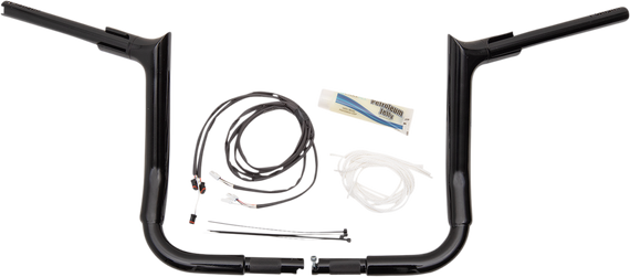 Caracteristicas: Adjustable 1-½” collar next to handlebar controls for custom look Revolutionary bolt-together two-piece handlebar design that takes up half the shelf space, is easy to ship and even faster to install CNC mandrel-bent from 1-1/2" diameter x .095" wall heavy tube EZ install means no more need to fight internal wiring; install handlebar wiring in minutes Billet machined top with a large internal machined radius allows for EZ pulling of wiring (non-welded top corner) Install kits include everything needed to install the handlebars in half the time of other kits due to our design that only extends the existing clutch cable/ clutch line and brake lines Handlebars are knurled and notched for TBW applications Made in the U.S.A. Accepts OEM heated grips Patent No. 10,946,926