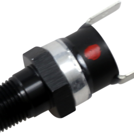 • This bi-metal disc type thermostat installs directly into any 1/8" NPT port and provides an automatic switch to turn on 12V electric fan at the set temperature