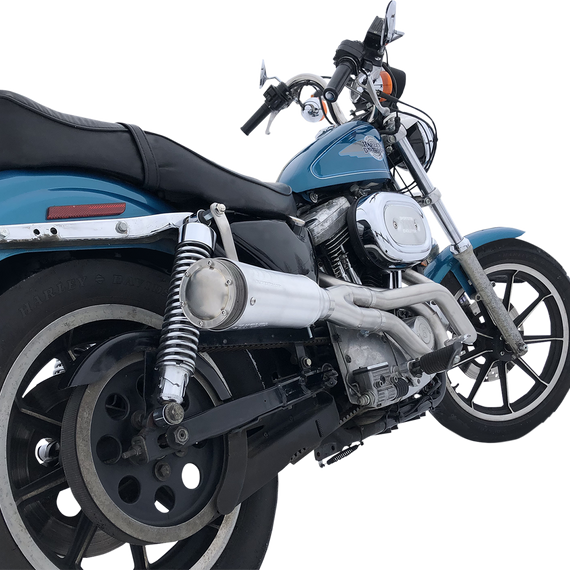 Caracteristicas: Designed with the Hooligan racer in mind, this mid-high exit 2:1 features the same head pipes used in our popular 2:2 systems but merges them with a smooth high flow collector into one of our 4" Competition Aluminum Race Mufflers. This system includes; Front and Rear head pipes, high flow 2:1 collector, 4" Comp. Alum. Race Muffler, 12 discs, closed end cap and screws, the moutning support bracket and instructions. We do suggest using the OEM HD style Conical Mesh Gaskets (Not Included).