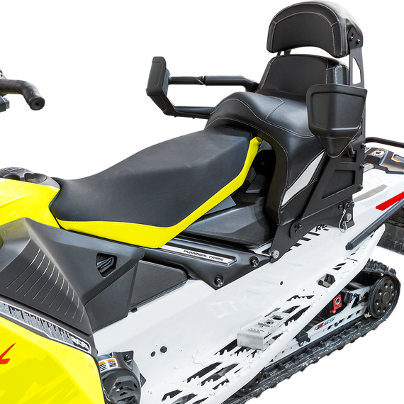 Caracteristicas: Add two-up capability to your sled Modern design and style Easy installation and removal (in a few seconds) Ergonomic concept designed for passenger and driver comfort Adjustable lumbar support Hand guard/wind deflectors are included Available with heated grips with RCA outlet Grip handles are adjustable (three different heights) Seat and model-specific attachment systems sold separately Maximum weight capacity: 175 lb.