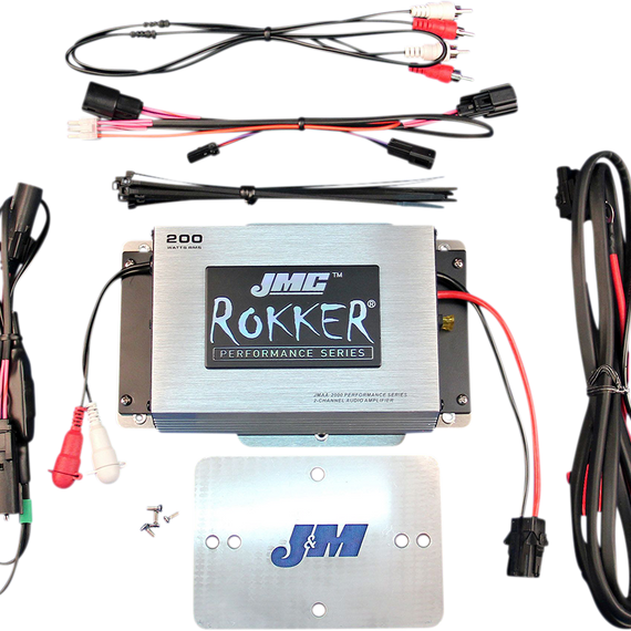 Caracteristicas: The ROKKER 2-channel 200w amplifier kit has been designed specifically for use in the fairing with the stock Harley 4.3 Std, 6.5GT or GTS touch-screen radio, and is tuned for the stock Harley flash, no special flash needed This kit will also connect to the Sony 7000 or Fosgate replacement HD radios with direct RCA-RCA connections (ONLY) and is easily adjustable in the field with a small screwdriver Amplifier mounts to custom made stainless steel 2-piece bracket system, to provide solid and secure mounting inside the fairing Custom made plug-n-play wiring harnesses/RCA-RCA direct cable adapters are included with this complete audio kit, top quality heavy gauge power/ground wires are used for the fused battery connection, along with all necessary mounting hardware & complete installation/operation and tuning instructions
