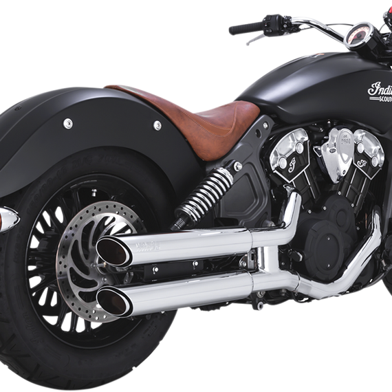 Caracteristicas: Designed with the signature Vance & Hines twin slash end treatment rotated out 45° Brings out the roar of the Scout's aggressive double overhead cam engine, but can also be tempered with optional quiet baffles Includes full coverage heat shields A quick and cost-effective upgrade for the Indian Scout Includes mounting hardware and installation instructions
