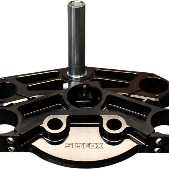 Caracteristicas: CNC-machined 6061-T6 aluminum construction Zinc-plated steel stem Six lb lighter than stock trees Stock rakes include fork stop Accepts stock risers and bushings Compatible with OEM upper stem assembly and bearings Made in the U.S.A. FLTR models will require gauge relocation. Will require relocation of ignition switch. Not for use with fork boot covers/sliders.