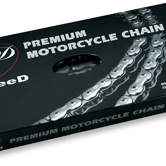 Caracteristicas: Precise forging process leads to a stiff chain for better acceleration and more efficient engine work Lightening hole allows for a lighter chain without compromising strength while removing mud and dispersing heat more efficiently Improvement in transmission efficiency Special pin with holes in both ends allow the chain to be lightened Edge-cut inner plate reduces friction and allows for smooth engagement with sprocket
