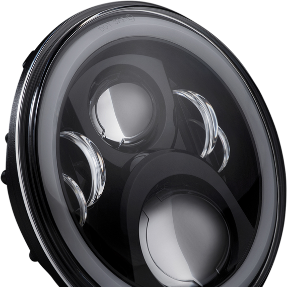 Caracteristicas: ProGLOW™ LED Halo Headlamp features projection style high and low beam with advanced optical D lenses for a smooth, bright white beam pattern Headlamp automatically keeps low beam LEDs illuminated when high beam is activated, no additional harnesses required Built in ProGLOW™ color changing Halo plug into ProGLOW™ Bluetooth Controller (sold separately) The innovative app connects to IOS or Android providing Bluetooth control of your lights at your fingertips 6000k color temperature DOT/SAE compliant