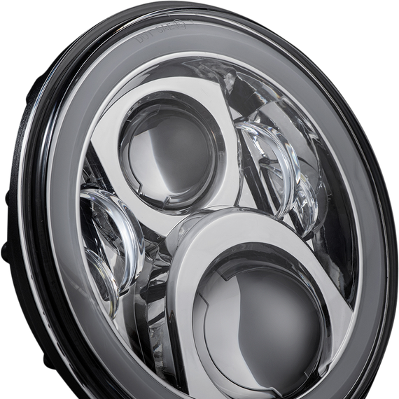 Caracteristicas: ProGLOW™ LED Halo Headlamp features projection style high and low beam with advanced optical D lenses for a smooth, bright white beam pattern Headlamp automatically keeps low beam LEDs illuminated when high beam is activated, no additional harnesses required Built in ProGLOW™ color changing Halo plug into ProGLOW™ Bluetooth Controller (sold separately) The innovative app connects to IOS or Android providing Bluetooth control of your lights at your fingertips 6000k color temperature DOT/SAE compliant