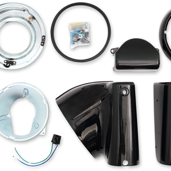 Caracteristicas: Two-piece die-cast aluminum housing Re-creates the nostalgic look of the 1960s FL models Handlebar clamp cover, headlight mount, trim ring and all other necessary parts and hardware included for a complete installation Headlight sold separately