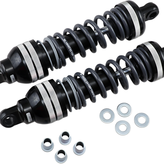 Caracteristicas: Unique Ultra spring configuration provides the superb ride quality and suspension travel of a 13" shock but the custom lowered look of a 12" shock Low Series shocks are designed to sit even lower; 2" lower than a stock Touring model Built around Progressive Suspension's Frequency Sensing Technology (FST) Allows the shocks to sense the frequency of a bump and automatically adjust damping for superior ride quality Unique spring combination delivers a dropped ride height while being ridden, but also while the bike is on a side stand This allows you to better manage your bike at intersections and when parking Adjust spring pre-load by hand, no special tool needed Progressive rate main springs specifically designed for touring models High-pressure gas charged for consistent performance Heavy Duty Applications recommended for bikes operating at or near maximum load rating over 50% of the time. Before purchasing or attempting to install shocks that are different than the OEM length, confirm that your wheel travel can be altered without causing clearance issues, such as swingarm/axle to exhaust contact as well as chain/belt guard or tire contact.