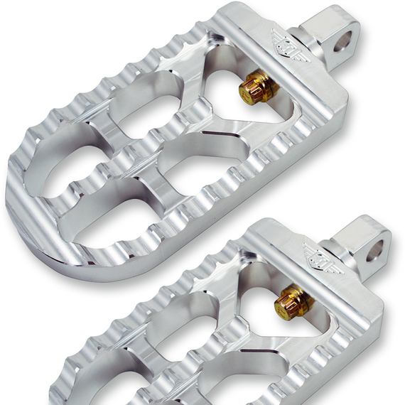 • Give your bike a unique design twist with these all-billet aluminum adjustable serrated footpegs