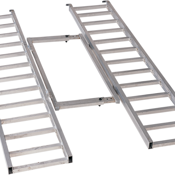 Caracteristicas: Tri-fold aluminum ramp is strong and lightweight Unit is adjustable from 42" to 52" 1,250-lb. distributed loading capacity Bar-style surface for better traction Comes with E-Z grip rubber truckrests and nylon straps Do not ride ATV on ramp at any time.