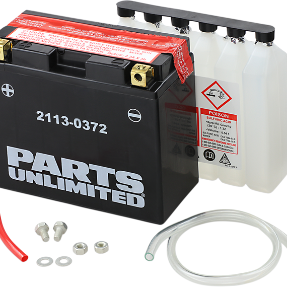 Caracteristicas: Parts Unlimited is proud to offer a premium-quality, maintenance-free battery at a great low price Special absorbed-glass mat battery eliminates water loss, permitting the battery to be permanently sealed once it is filled with acid Holds charge three times longer than conventional batteries High performance active material with anti-sulfation additive High capacity and cranking performance Acid Pack included