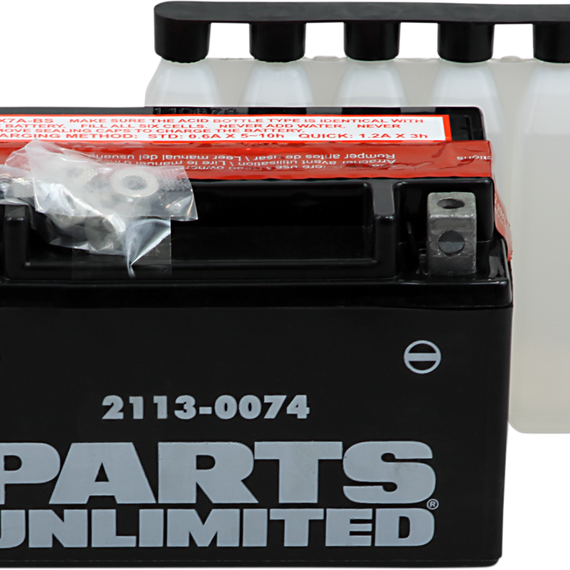 Caracteristicas: Parts Unlimited is proud to offer a premium-quality, maintenance-free battery at a great low price Special absorbed-glass mat battery eliminates water loss, permitting the battery to be permanently sealed once it is filled with acid Holds charge three times longer than conventional batteries High performance active material with anti-sulfation additive High capacity and cranking performance Acid Pack included