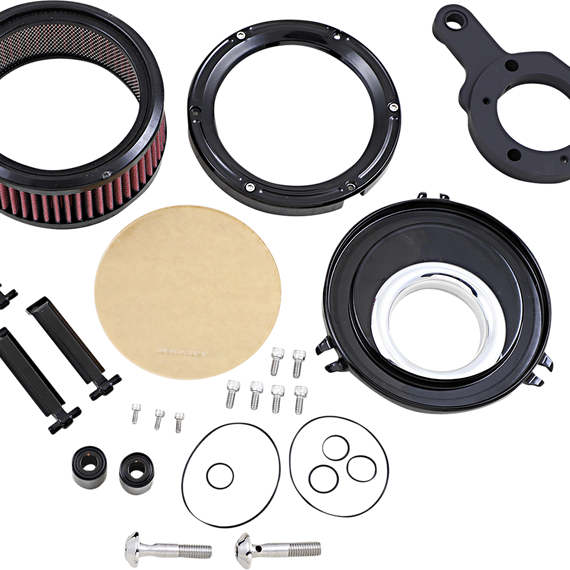 Caracteristicas: Features a billet aluminum backing plate with hidden integrated breather system and a plexiglass outer cove Snap-in velocity stack for improved airflow Dyno developed and tested Made in the U.S.A.