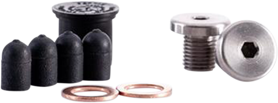 Caracteristicas: Machined from aluminum in a low profile design and coated black to match the head perfectly or left raw: either way they virtually disappear This upgrade has all the components needed to replace the air injection system for a finished look and a cooler running engine Reduction in Exhaust temperature Discourages blue pipes Reduces lean conditions Includes low profile air injection plugs, copper crush gaskets, rubber nipples and an air box plug (for stock air box)