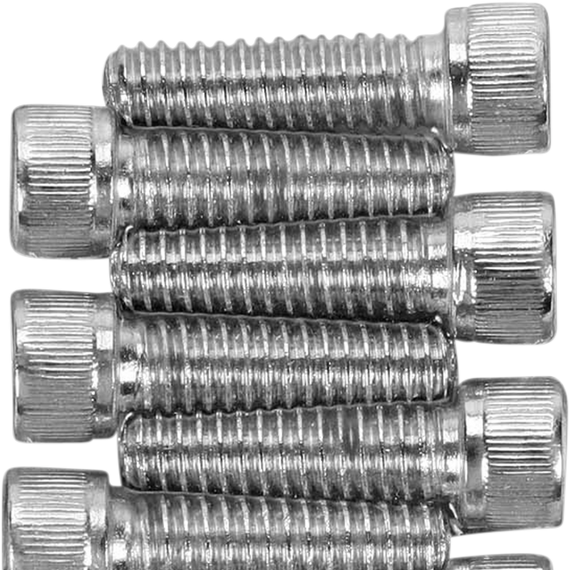 Caracteristicas: Socket-head bolt sets to meet virtually any custom need Complete motor sets for 07 and later Big Twin include bolts for primary, cam, cam sensor, derby, rocker box, transmission top, transmission side, lifter block and clutch covers Complete motor sets for 87-94 Big Twin include bolts for cam, primary, point, clutch, inspection and chain covers, lifter base, inner primary, top front and rear motor mounts, timing plug and header mount screws Complete motor sets for 04 and later XL include bolts for primary, cam, derby, lifter block, points cover, rocker box and engine case Complete motor sets for 86-03 XL include bolts for cam, primary, generator, sprocket, rocker box, top motor mount, lifter base, point or magneto cover Made in the U.S.A.