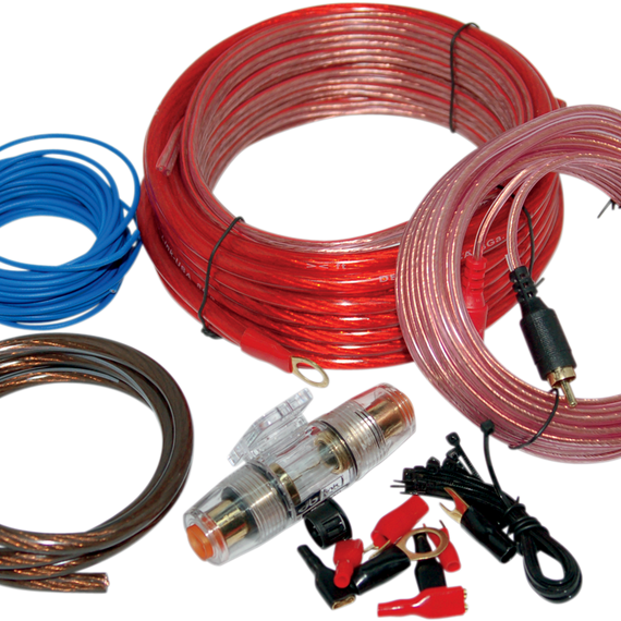Caracteristicas: Kit includes 17' of 8-gauge red power wire, 3' and 15' RCA cables, 3' of 8-gauge black ground wire, 17' of 18-gauge blue remote wire and 17' of 16-gauge speaker wire Also includes AGU-style heat-resistant fuse holder, 50-amp AGU fuse and 6' of split loom with cable ties and crimp terminals Handles up to 900 watts Made in the U.S.A.