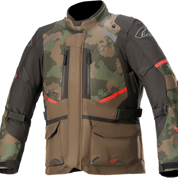 Caracteristicas: Designed using Alpinestars exclusive Drystar® construction Offers 100% waterproofing and great levels of breathability, even in difficult riding conditions Technically advanced construction of this jacket offers protection and abrasion resistance and is adaptable to all weather conditions Tech-Air® 5 ready Constructed with an advanced reinforces polyfabric textile for durability Newly developed direct ventilation system (DVS) zippered chest air intakes and back exhaust ports for high levels of airflow Internal impact protection provided by removable elbow and shoulder protectors Chest and back compartments can accommodate the Nucleon chest and back inserts; sold separately Reinforced polymer-printed texturing in critical elbow and lower arm areas for enhances abrasion resistance Reflective details for improved rider safety Upper chest zippered hand pockets work in tandem with the ventilation openings to ensure personalized levels of cooling airflow Front waterproof cargo pockets for convenience and peace-of-mind closure Large, external utility pocket on lower back plus internal pockets and a waterproof wallet pocket for real-world practicality Integrated soft edge collar and 3D mesh construction for enhance comfort over long distances Premium YKK® zipper for main front closure offers adaptable, secure and convenient closure Removable long-sleeve thermal liner ensures comfort on hot or cold days Pre-contoured sleeves with accordion stretch panels on elbows for comfort and freedom of movement Hook-and-loop-closing waist adjustment belt ensures a highly customizable fit External zippered chest pockets and cargo pockets for safe peace-of-mind storage Shock cord on adjustment on inner bottom for an optimal fit
