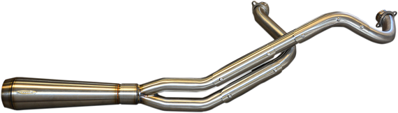 Caracteristicas: Meticulously handmade from high-quality 16GA stainless steel, mandrel bent then gas purged and TIG welded Includes custom heat shields with wire tied fasteners for a race inspired look High flow merge collector with a true double slip joint to allow muffler to head pipe expansion Muffler and baffle designed to bring out the engine's true performance while providing an aggressive yet refined rumble Contemporary design exits under the right saddlebag Saddlebag brackets included (black powder coated finish) O2 ports included Made in the U.S.A.