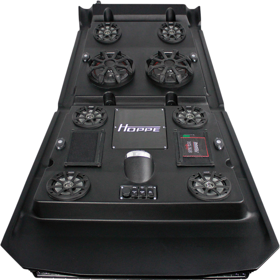Caracteristicas: Front 31” 150W sleek, high-output single-row LED light bar Rear 11” 50W sleek, high-output single-row LED light bar Backlit switches for light bars and interior lights - easily control your lights at night RBG LED Interior light kit includes four lights Phone app-controlled (iPhone and Android compatible) Lights dance to the beat of your music Kicker® KMC2 multimedia gauge-style marine receiver with Bluetooth Bluetooth audio streaming AM/FM digital tuner USB input and USB charging RCA aux input headphone jack Kicker® 6.5” PS-Series speakers Titanium tweeters Neodymium magnets for high power with low weight Lightweight, weather-resistant polymer baskets Waterproof suspension system Kicker® COMPRT 10” 400W, 1 ohm subwoofer Dual voice coil Extra-large surround roll for deeper, smoother bass Kicker® PX series amplifiers 300 watt – 4 x 75 watt full-range amplifier comes standard on all models 500 watt – mono subwoofer amplifier on configurations with subwoofer Weather-resistant, IP66 rated Active crossover Hand-laid reinforcement layered with directional fiber orientation for ultimate rigidity and strength Rigid design improves sound quality for the cleanest bass and crispest highs Strengthened edges to protect from tree branch strikes Cage clamp fasteners hidden on the top side for a smooth yet aggressive design Includes two zipper pockets Hoppe Liner Coating for durable, all-weather protection