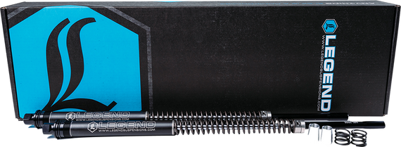 Caracteristicas: Easy installation Includes 2 mono-tube, dual chambered damper cartridges Nitrogen chambers with internal floating pistons Performance spring rate Machined 303 Stainless threaded pre-load adjuster Increased pre-load range allows fine tuning for various riding styles and weights Ride quality is smooth and controlled Improves stability, cornering and traction Eliminates front-end dive during aggressive braking and maneuvering Firm feel for high-speed sweeping turns Eliminates bottoming out on large bumps or potholes Reduces dragging floorboards and pegs Designed for optimum performance with Legend rear suspensions Includes Maxima Racing Oil in cartridge and quart bottle Lifetime Warranty Made by hand in Sturgis, SD USA This kit is designed for +2 lift. New upper fork tubes will need to be purchased for installation - Harley-Davidson Part #83804-09 (41 mm) WARNING: Cancer and Reproductive Harm - www.P65Warnings.ca.gov