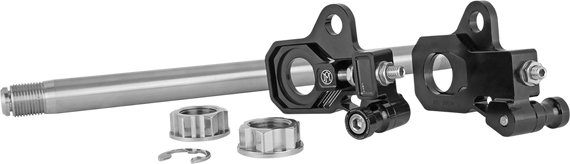 Caracteristicas: Removable rear stand spools (for use with short 2 into 1 exhaust only) Billet axle adjuster mount and adjustment slider Shock mounting hardware included 304 stainless steel 25 mm axle