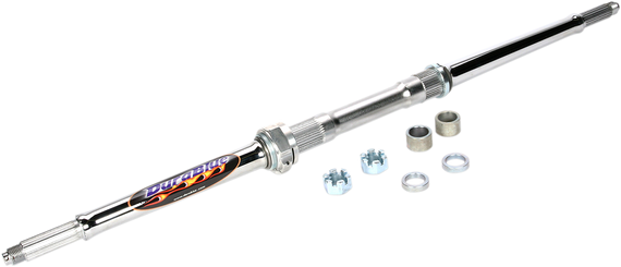 Caracteristicas: Wheel base and offset feature 2" adjustability by simply swapping spline spacer locations Great addition to your recreational riders' quads; twice the strength of stock axles Adjustable from -2" to +5" from standard by quick-changing pin drive hubs The most cost-effective choice when reliability is a prime concern Forged carbon ASX-600 Steel for maximum strength Lighter weight with a polished chrome finish Only 12 to 13 lb.