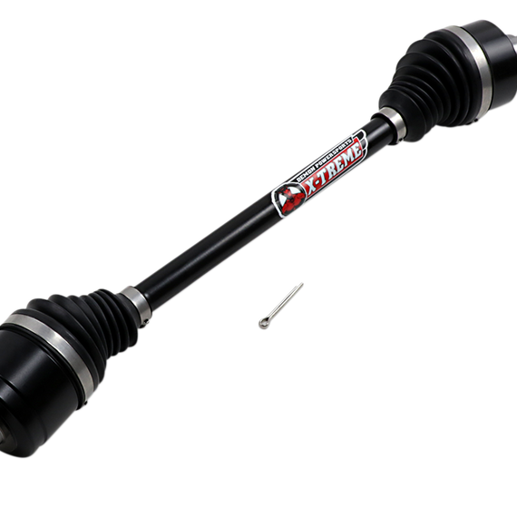 Caracteristicas: Dual heat treated axle components for added strength CNC machined, micro-polished internal components Re-engineered cage design to enhance durability Larger CV joints and center shaft diameter Constructed of 4340 chromoly steel TPEE boot resists wear and tear Swing angle up to 47 degrees Lithium based grease containing molybdenum disulfide and EP agent