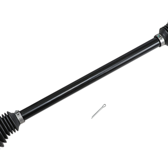 Caracteristicas: Dual heat treated axle components for added strength CNC machined, micro-polished internal components Re-engineered cage design to enhance durability Larger CV joints and center shaft diameter Constructed of 4340 chromoly steel TPEE boot resists wear and tear Swing angle up to 47 degrees Lithium based grease containing molybdenum disulfide and EP agent