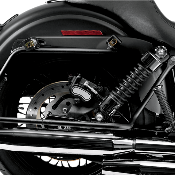 Caracteristicas: Made of high-quality steel with a black powder-coat or chrome finish Comes with fastening mechanisms Will work with fixed or detachable sissy bar side plates Use 93-13 style OEM hard-sided saddlebags which must be purchased separately Optional Slick Signal license plate frame with LED run, turn, brake and plate lights; need to be hardwired; not DOT compliant Made in the U.S.A. U.S. Patent #7,278,560.B2 Will not fit models with Shotgun-style exhaust; exhaust must be lower than rear axle. Requires turn signal to be relocated on Fatboys. May not fit with all styles of axle covers.