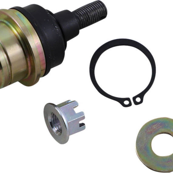 Caracteristicas: Ball joint kits are sold per A-arm and come with snap ring and cotter pin King pin kits (used in applications where a king pin was used rather than a ball joint) include all bushings, pins and seals needed for repair Ball joints feature heavy-duty steel cases with POM-M90 bearing material for long life Put an end to premature Honda ball joint failure by upgrading from the OEM aluminum joint to our heavy-duty steel joint Inexpensive replacement for those Kawasaki and Suzuki applications that otherwise require purchase of complete A-arm/steering knuckle