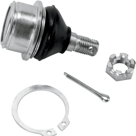 Caracteristicas: Ball joint kits are sold per A-arm and come with snap ring and cotter pin King pin kits (used in applications where a king pin was used rather than a ball joint) include all bushings, pins and seals needed for repair Ball joints feature heavy-duty steel cases with POM-M90 bearing material for long life Put an end to premature Honda ball joint failure by upgrading from the OEM aluminum joint to our heavy-duty steel joint Inexpensive replacement for those Kawasaki and Suzuki applications that otherwise require purchase of complete A-arm/steering knuckle