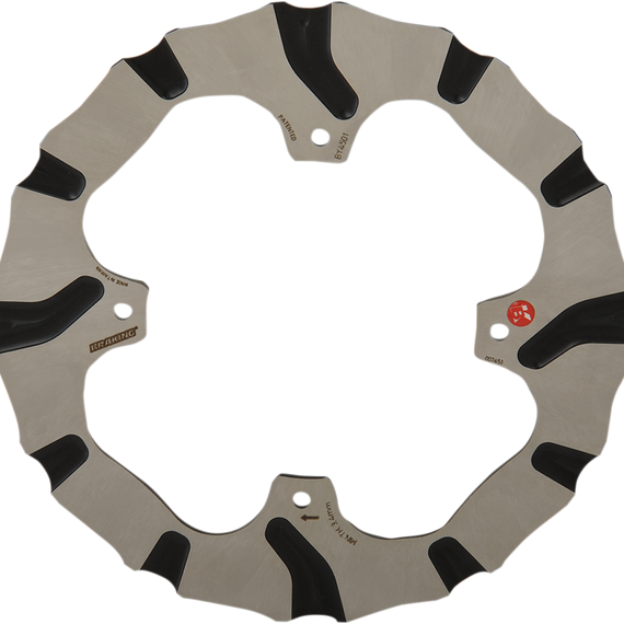 Caracteristicas: The Batfly system improves the rider's feeling and the response during the overall braking event and brings the performance to the top of the category The Batfly system, thanks to the special grooves on the rotor, represents a great evolution in heat dissipation, due to the area that alternatively is not covered by one of the pads Heat generated on one side can be dissipated inside the ventilation channel created between the other side pad and the disc Control of the dilation at high temperatures means better, resistance, compared to a round disc, in case of extreme thermal stress The Batfly system cleans and renews the pad surface at each pass on the grooves, maintaining the friction coefficient of the pads at the maximum level