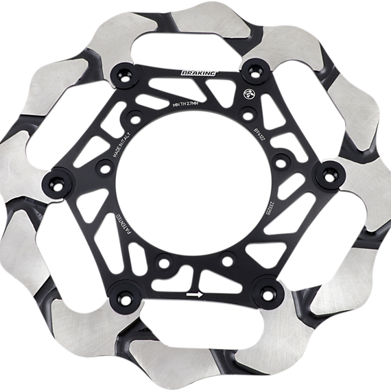 Caracteristicas: The Batfly® reaches a new evolution The brake rotors outer track mounts to the newly designed carrier at six points; both the carrier and the rivets are now aluminum instead of stainless steel which reduces weight The carrier is now made of aluminum AL7075 T-6 like the rivets; this allows for optimal shape, reduced weight and higher rigidity 270mm diameter rotors; caliper relocation brackets for oversize applications sold separately