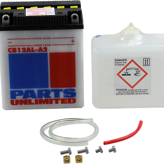 • Kit includes battery, pre-measured acid pack, red filler tube, hardware kit and clear vent tube