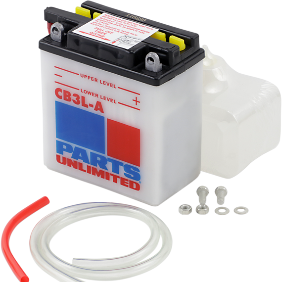 Caracteristicas: Powerful starting power at a great price! Parts Unlimited Heavy-Duty batteries are built to the same exacting specifications and quality-control standards as OEM Rugged and provide more cranking power over standard batteries Lead calcium alloy reduces water loss and service by 66% compared to standard batteries Includes anti-sulfation chemical formulated to reduce sulfate crystal buildup on the battery plates Reduces self-discharge for longer time between charges Fiberglass separators improve acid flow Kit includes battery, pre-measured acid pack, red filler tube, hardware kit and clear vent tube