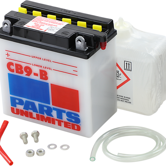 Caracteristicas: Powerful starting power at a great price! Parts Unlimited Heavy-Duty batteries are built to the same exacting specifications and quality-control standards as OEM Rugged and provide more cranking power over standard batteries Lead calcium alloy reduces water loss and service by 66% compared to standard batteries Includes anti-sulfation chemical formulated to reduce sulfate crystal buildup on the battery plates Reduces self-discharge for longer time between charges Fiberglass separators improve acid flow Kit includes battery, pre-measured acid pack, red filler tube, hardware kit and clear vent tube