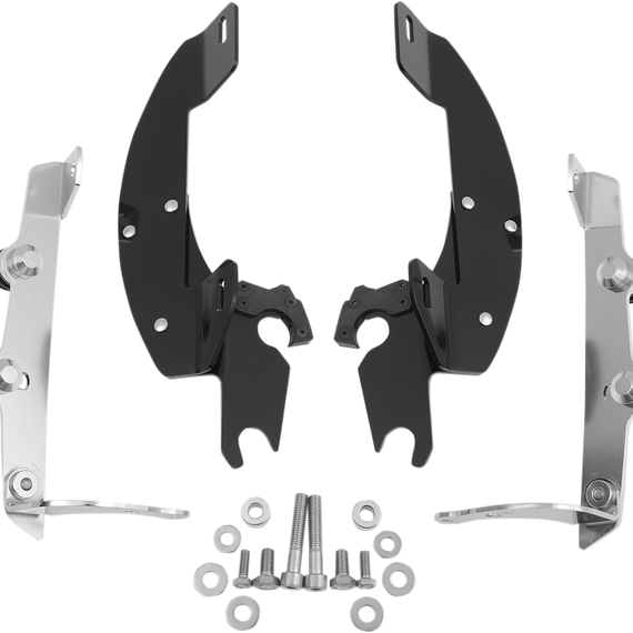Caracteristicas: Angle Adjustable Model specific no-hassle installation, then on-off without tools A pair of glass-filled nylon latches lock it down until the spring loaded "Trigger-Locks" are intentionally disengaged Made exclusively of electrocoated aluminum and stainless steel, with stainless steel fasteners Anchoring hardware is the same for all windshields and fairings for each bike Made in the U.S.A.