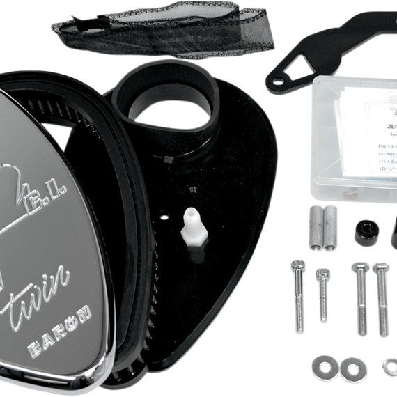 Caracteristicas: Slim 1-1/2" hi-flow reusable filter and specially designed back plate dynamically increases air flow and velocity Complete with breather kit, mounting hardware and micron-fabric raincoat for wet-weather riding Flow-bench and dyno-designed for substantially increased horsepower and torque Innovative styling enhances and accentuates your "V" Twin engine Easy-to-follow instructions included for a do-it-yourself install Set-back, thin-line design does not interfere with rider's leg Maximizes overall performance and fuel efficiency Made in the U.S.A.