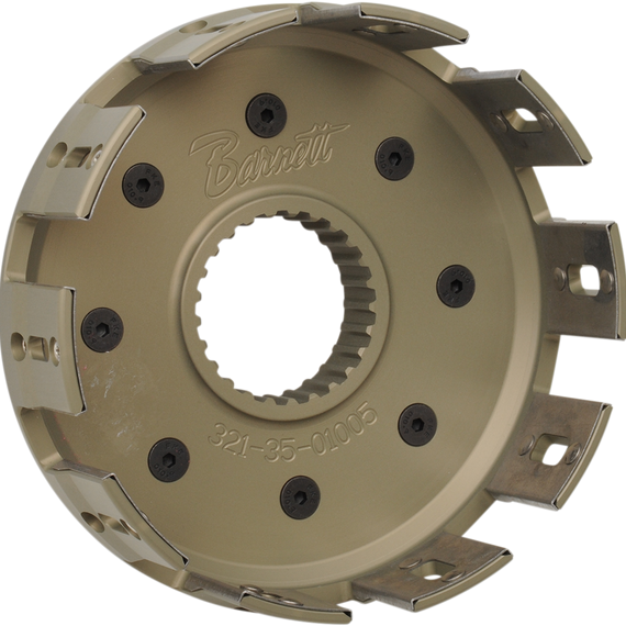 Caracteristicas: CNC-machined from 2024 T-3 billet aluminum for increased durability and extended clutch life Basket utilizes stainless steel drive inserts where the clutch plate tabs make contact with the basket Grade-eight fasteners are used to attach backing plate