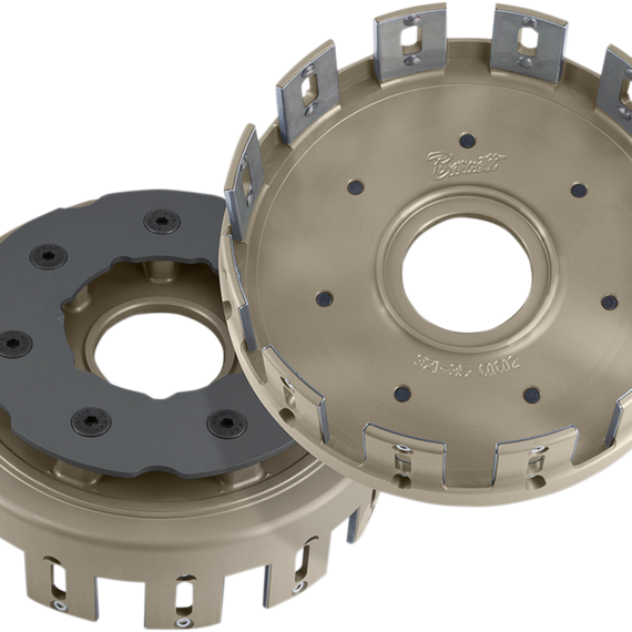 Caracteristicas: CNC-machined from 2024 T-3 billet aluminum for increased durability and extended clutch life Basket utilizes stainless steel drive inserts where the clutch plate tabs make contact with the basket Grade-eight fasteners are used to attach backing plate