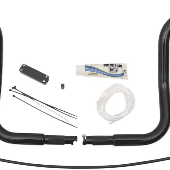 Caracteristicas: EZ Install means no more need to fight internal wiring; you can install wiring in minutes Kits include only the necessary components needed to install handlebars based on the model and height of handlebar Will include a brake line extension, clutch line/cable extension and wiring harness when needed CNC mandrel-bent from 1-1/4" diameter x .120" wall heavy tube Bolt together, two-piece handlebar that takes up half the shelf space and is easy to ship Made in the U.S.A. These handlebar kits do not replace existing lines, but they extend them Patent No. 10,946,926