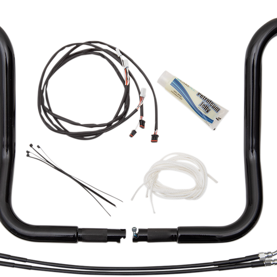 Caracteristicas: EZ Install means no more need to fight internal wiring; you can install wiring in minutes Kits include only the necessary components needed to install handlebars based on the model and height of handlebar Will include a brake line extension, clutch line/cable extension and wiring harness when needed CNC mandrel-bent from 1-1/4" diameter x .120" wall heavy tube Bolt together, two-piece handlebar that takes up half the shelf space and is easy to ship Made in the U.S.A. These handlebar kits do not replace existing lines, but they extend them Patent No. 10,946,926