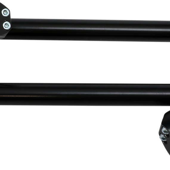 Caracteristicas: Machined out of 7075-T6 aluminum and anodized in black for a beautiful finish Designed with angled clamps for a greater racing tuck position Feature clean lines to match the look of modern sport bikes Two-piece design makes for an easier install Riser clip-ons feature 1-1/2" rise that results in a more comfortable, less hunched-over riding position Replacement bars and hardware available separately Not OEM replacements