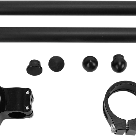 Caracteristicas: Vortex Clip-Ons are an economical replacement handlebar with amazing strength Machined from solid billet with a removable handlebar Handlebar tube can be replaced without buying an entire new Clip-On assembly because handlebar is not welded to clamp Clamp is CNC machined from a solid block of 7075-T6 aluminum Machined plastic bar ends and stainless steel fasteners Kit includes both collars, two handlebar tubes with plastic ends and high tensile strength fasteners Order by size of fork tube Made in the U.S.A. Vortex Bar Ends will also work with Vortex tubes