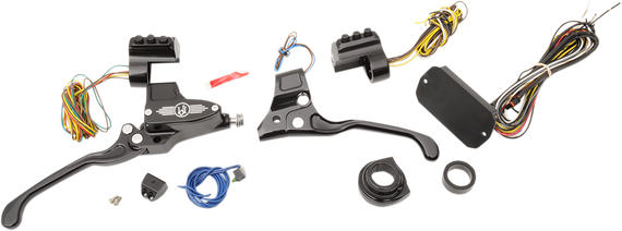 Caracteristicas: CNC machined from billet aluminum Kits include brake master cylinder, brake light switch, starter interrupt switch, left and right side switch housings, throttle housing, clutch side spacer, CAN Bus controller and perch Hard anodized bore to eliminate wear Made in the U.S.A. 14-16 FLHT/FLHX applications require the additional purchase of the following OEM #s for a complete installation: one each of OEM part #s 71735-08, 71822-98, 71821-98, 71825-96A and two of OEM part # 71618-98